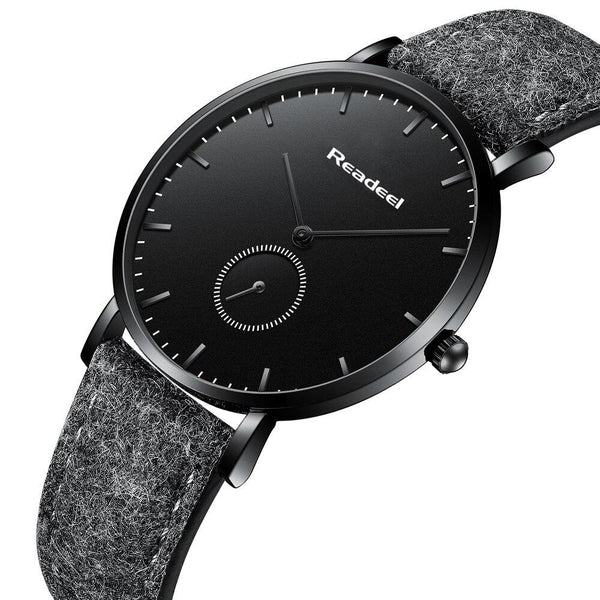 Design ultrafino da moda, pulseira de couro exclusiva de lã e couro e caixa de liga de alta qualidade.